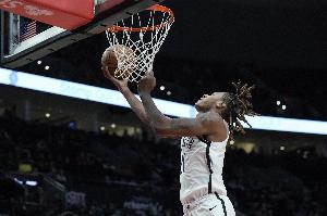 5次失误有点多!库明加全场9投6中 得到13分3板4助1帽&正负值-20