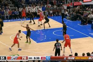 风驰电掣!威少一马当先推反击 背运过人后助攻德罗赞上篮得手