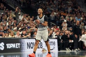 GIF-卡斯尔追防犯规 马刺挑战成功