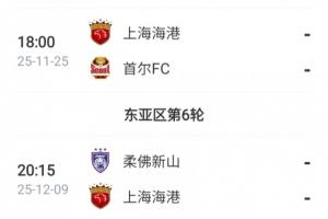 中超结束后,上海海港还将迎来两轮的亚冠精英联赛赛事,分别对阵首尔FC和柔佛新山。